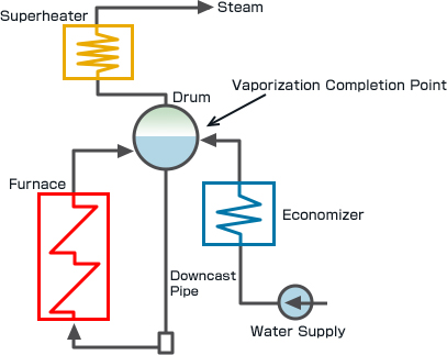In a drum boiler, to ensure reliability of the furnace area, there is a drum that continually supplies water to the furnace system.