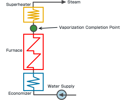 A once-through boiler is a simpler structure that does not require the drum function.